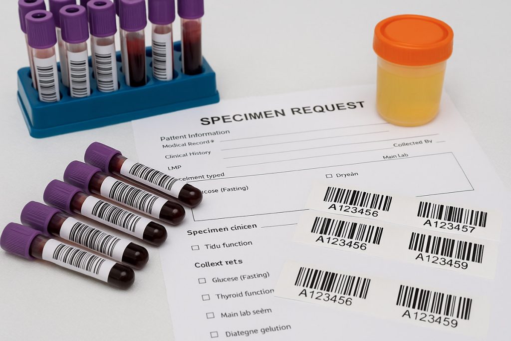 Kan tüpleri, idrar numuneleri ve biyokimya örnekleri için yüksek yapışkanlı ve silinmez baskılı etiket gerekir.